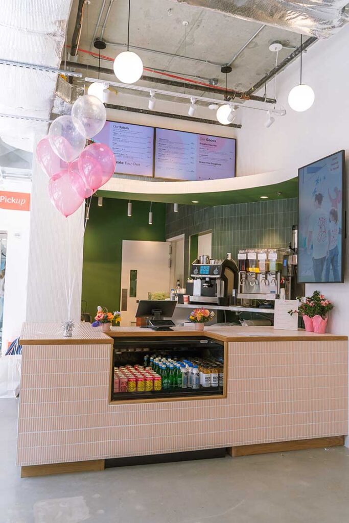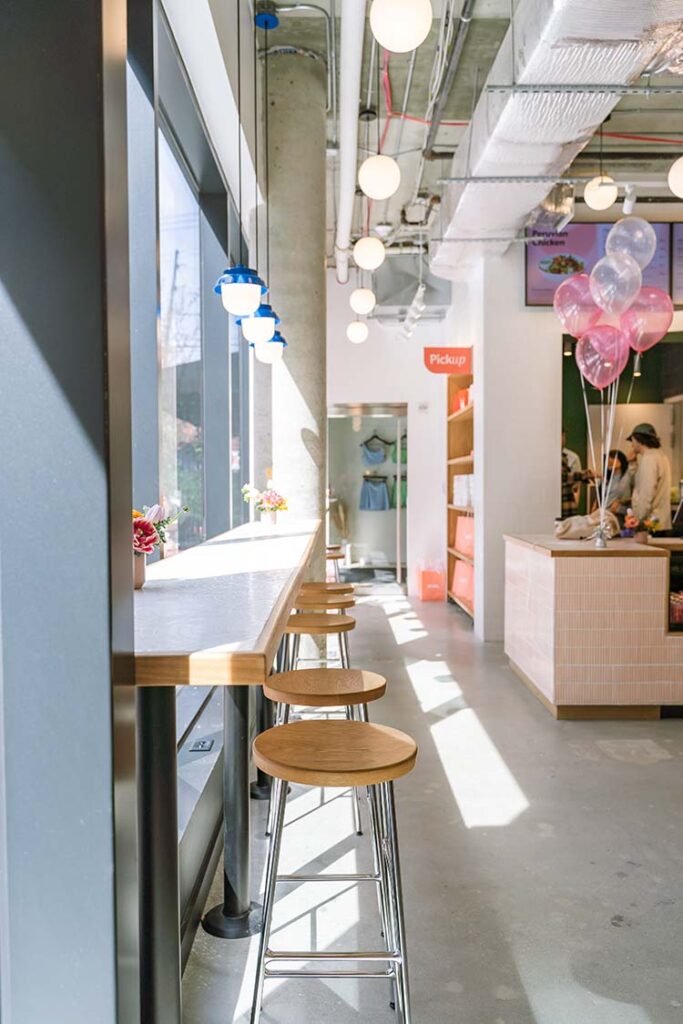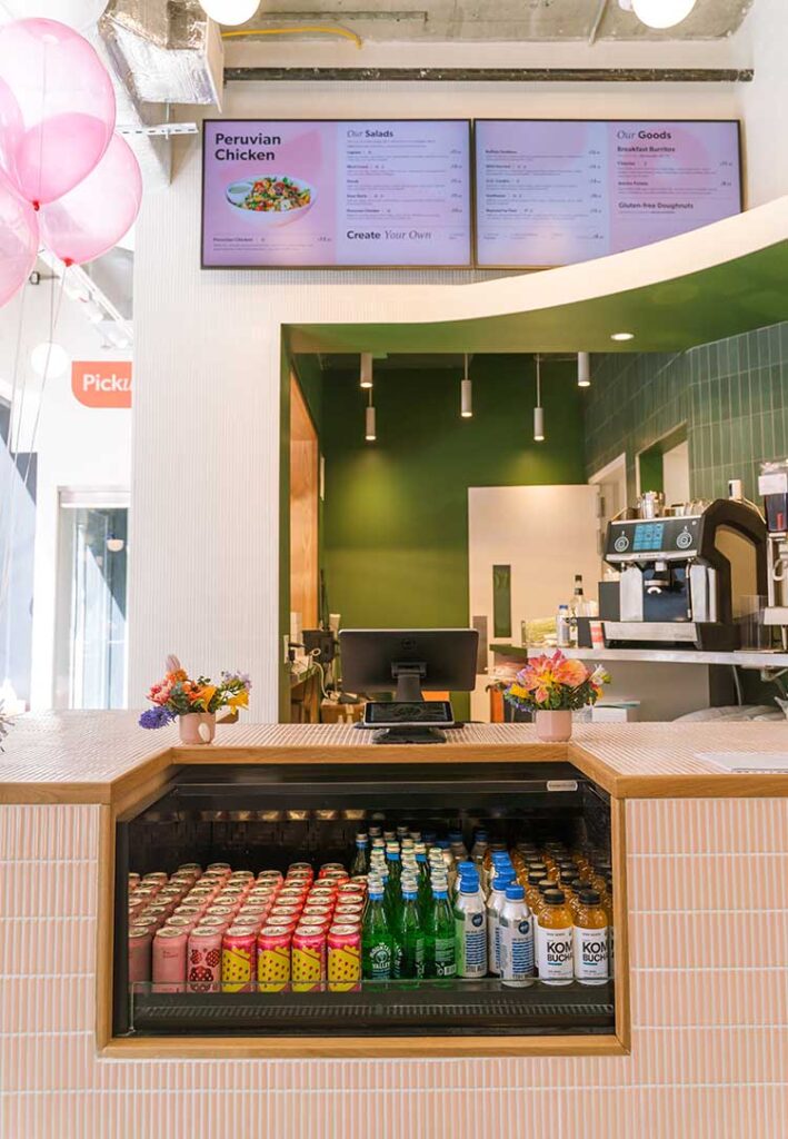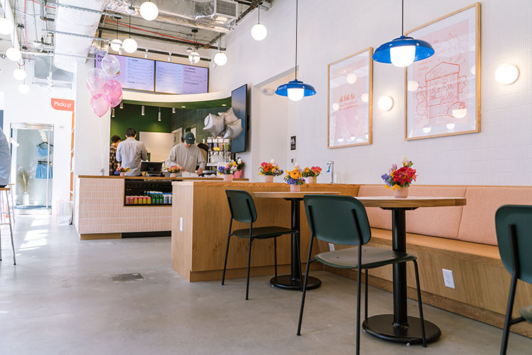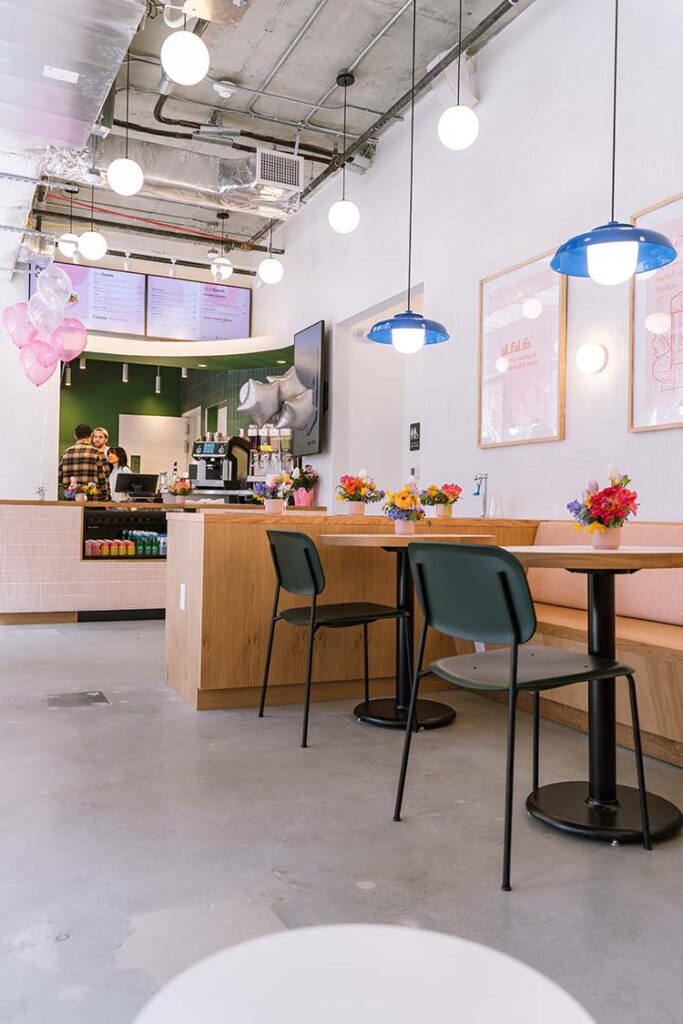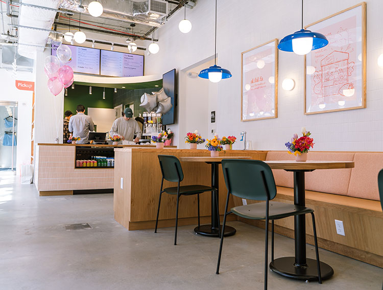 The restaurant features custom millwork throughout, floor to ceiling tile, polished concrete floors, and an innovative customer ordering system.