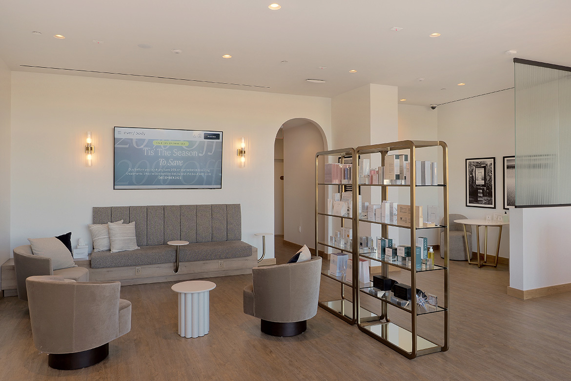 The high-end cosmetic spa included a new custom storefront, EIFS skin at the front façade, reconfiguration of the mechan¬icals, two new restrooms, a lounge style reception area with multiple treatment rooms.