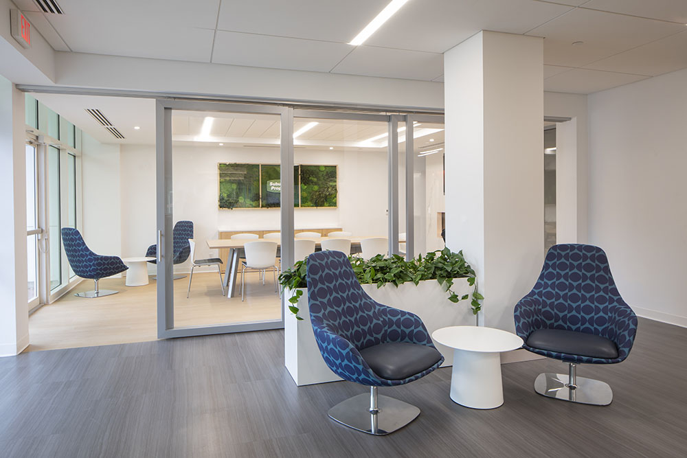The Project team operated under a Fast-track schedule and worked in occupied spaces that required coordination to alleviate disruptions to the client, but it also required extensive up-front communication to determine logistics.