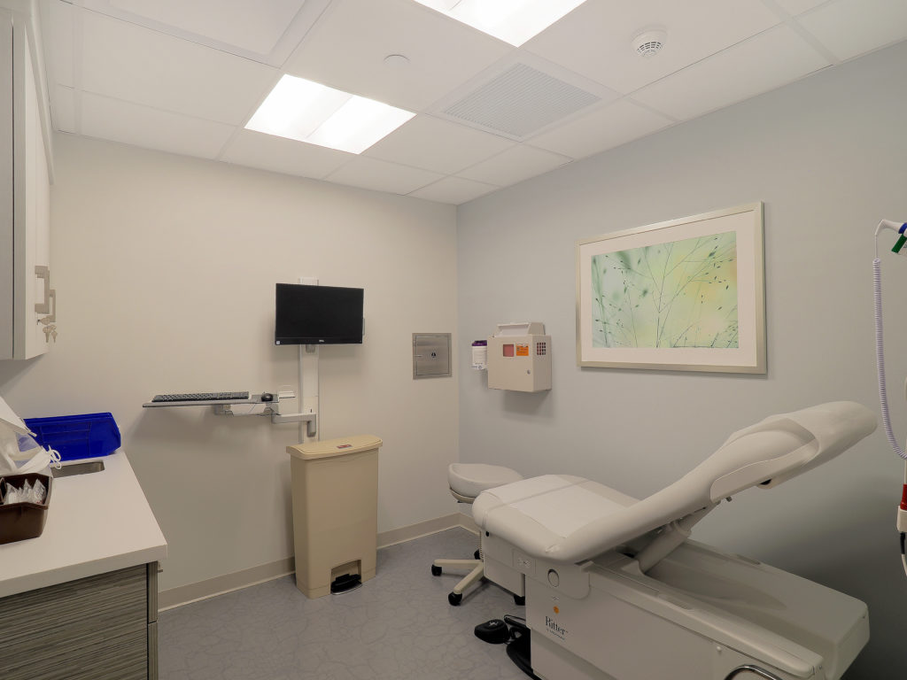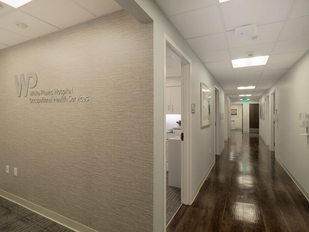 The Occupational Health project consisted of a newly renovated space including exam rooms, bathrooms, kitchen nook, waiting area, private office and staff areas.