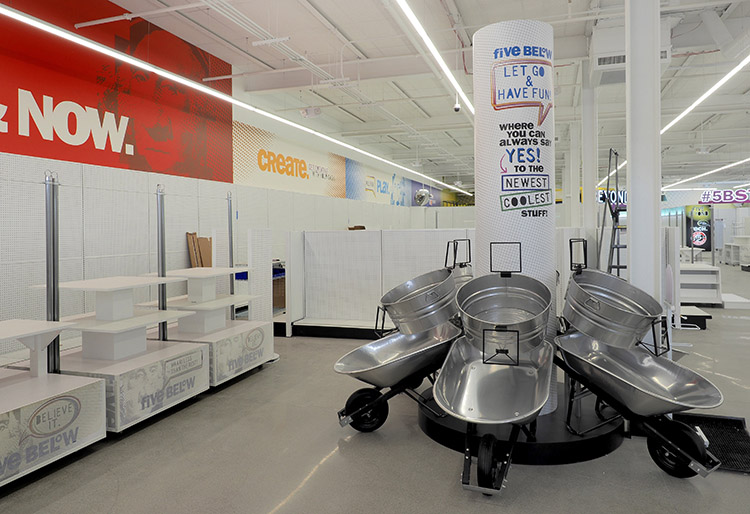 GTL Construction was hired to transform this 8,075 sq ft old hibachi grill restaurant and performed full gut renovation to transform this space into an iconic Five Below in Staten Island, NY.
