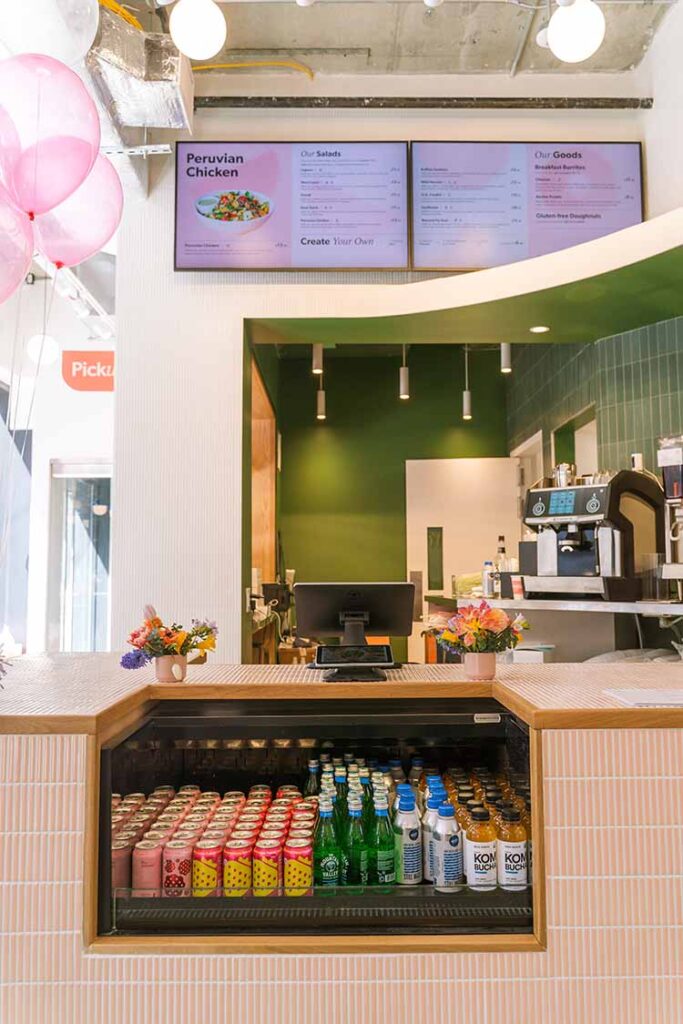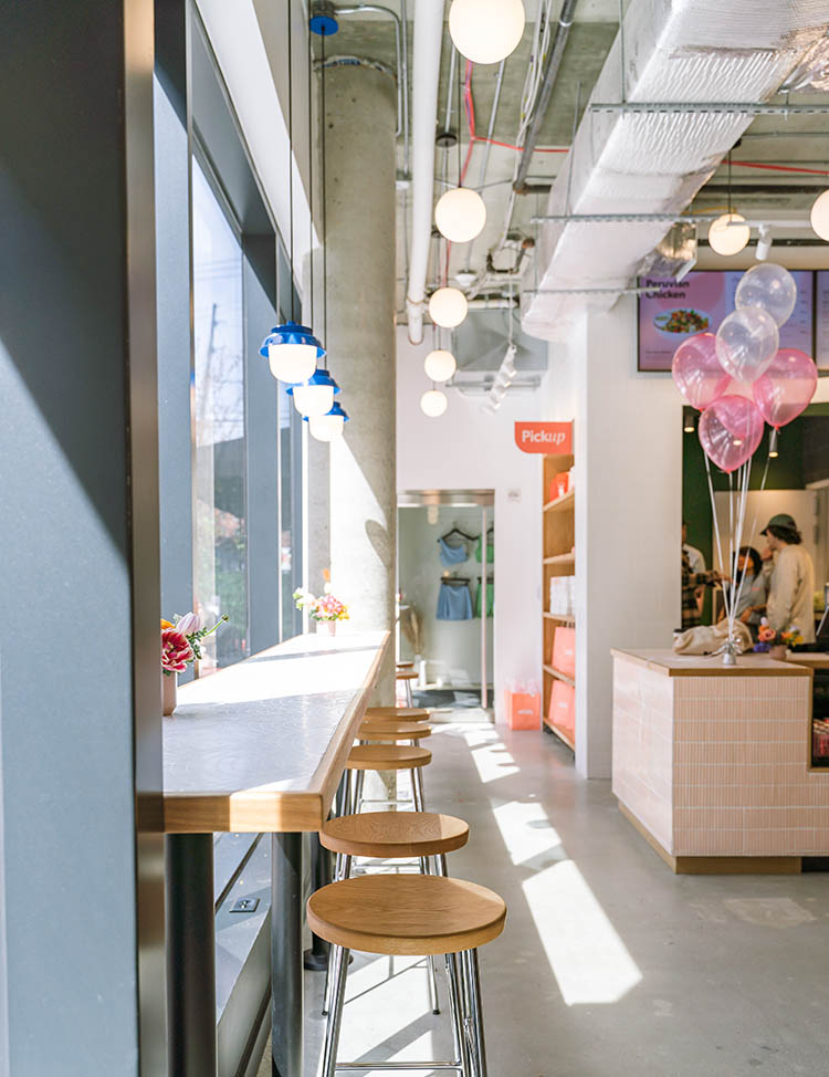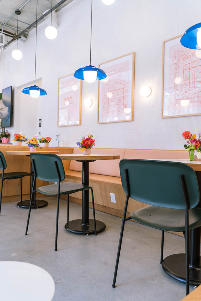 The restaurant features custom millwork throughout, floor to ceiling tile, polished concrete floors, and an innovative customer ordering system.
