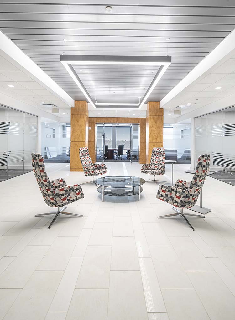 Complete office fit-out in a new ground-up building with a challenging schedule with not utilities scheduled for two weeks before turnover.