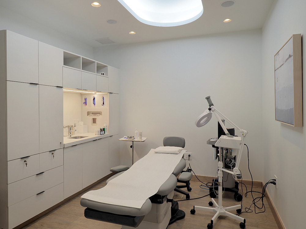 The high-end cosmetic spa included a new custom storefront, EIFS skin at the front façade, reconfiguration of the mechan¬icals, two new restrooms, a lounge style reception area with multiple treatment rooms.