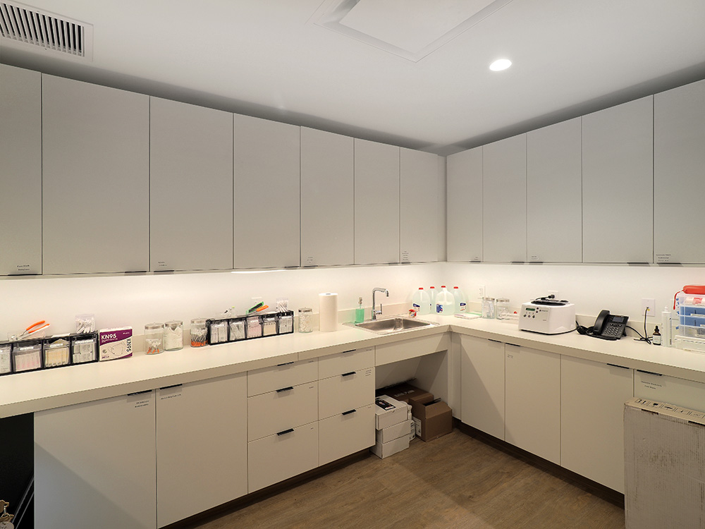 The treatment rooms contained custom millwork, sheet-rocked ceilings and cove lighting with wood style flooring creating a high end look for its patients. The project duration lasted 14 weeks which included coordination with both the landlord and the adjacent tenant GC.