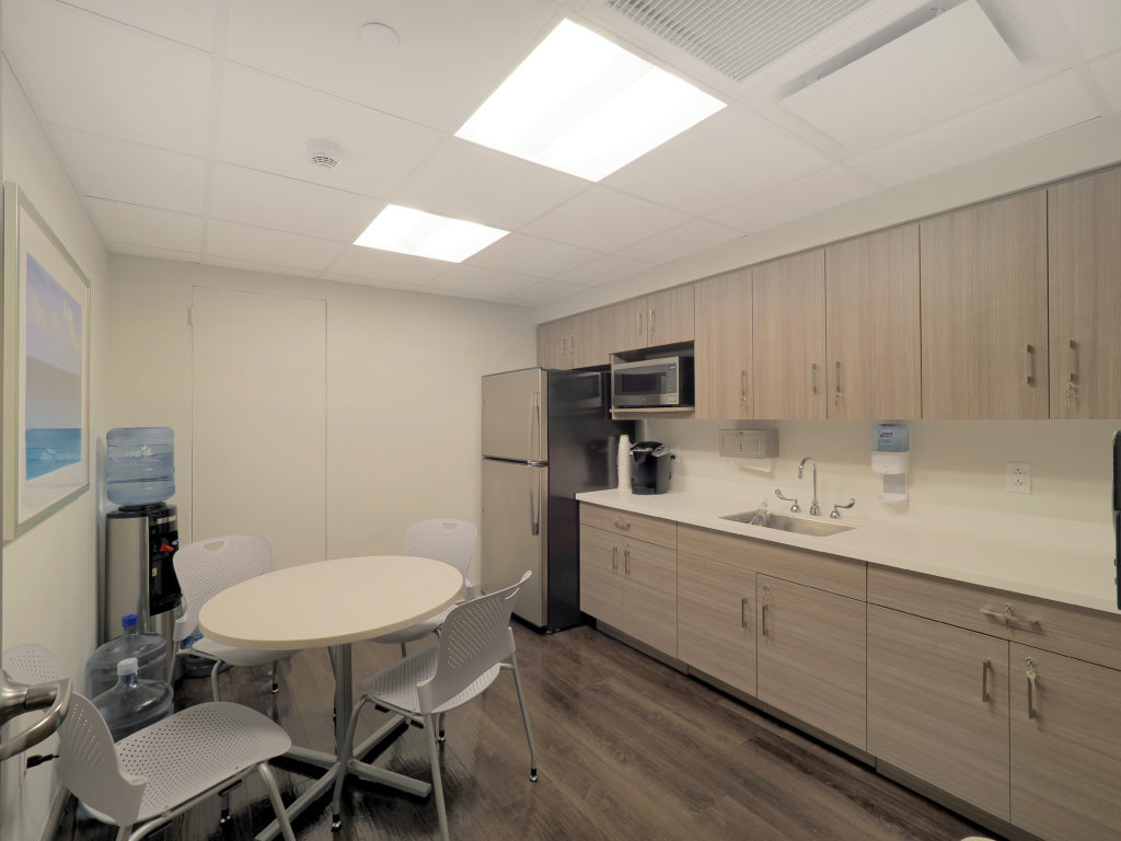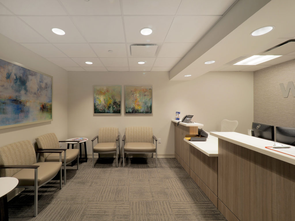 The Occupational Health project consisted of a newly renovated space including exam rooms, bathrooms, kitchen nook, waiting area, private office and staff areas.